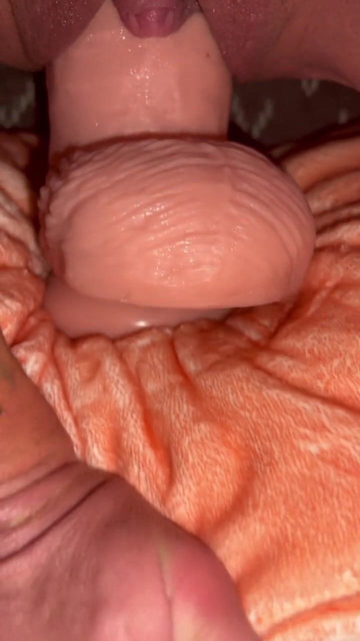 Loose cunt whore fucks cum hole with giant dildo