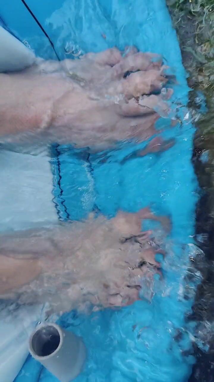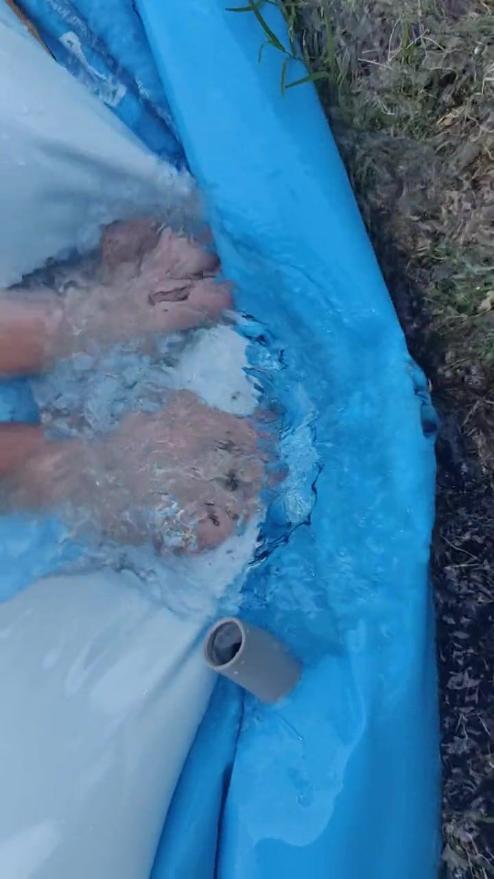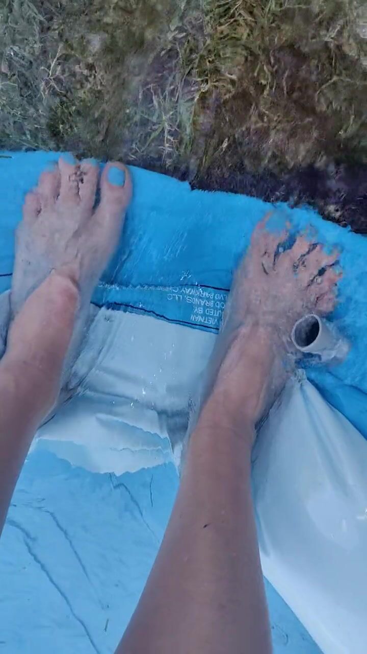 Letting fast water run across the top of my feet as I drain a pool