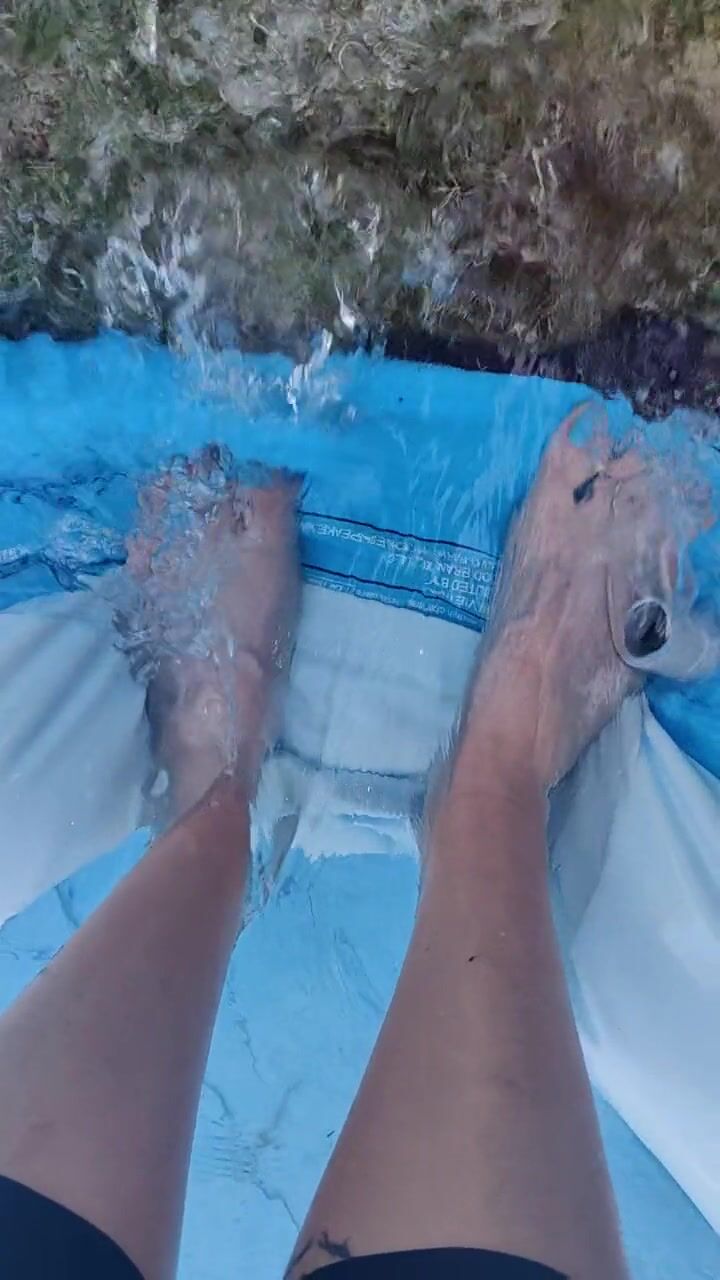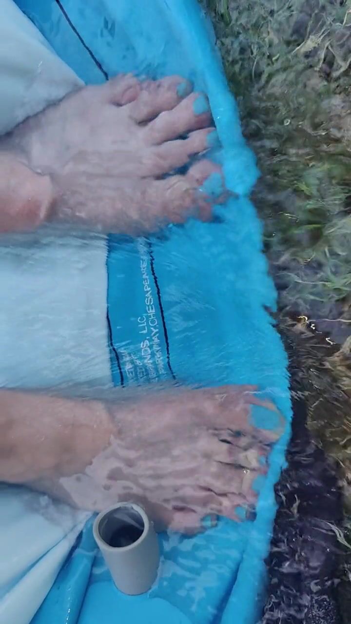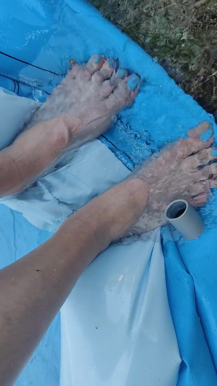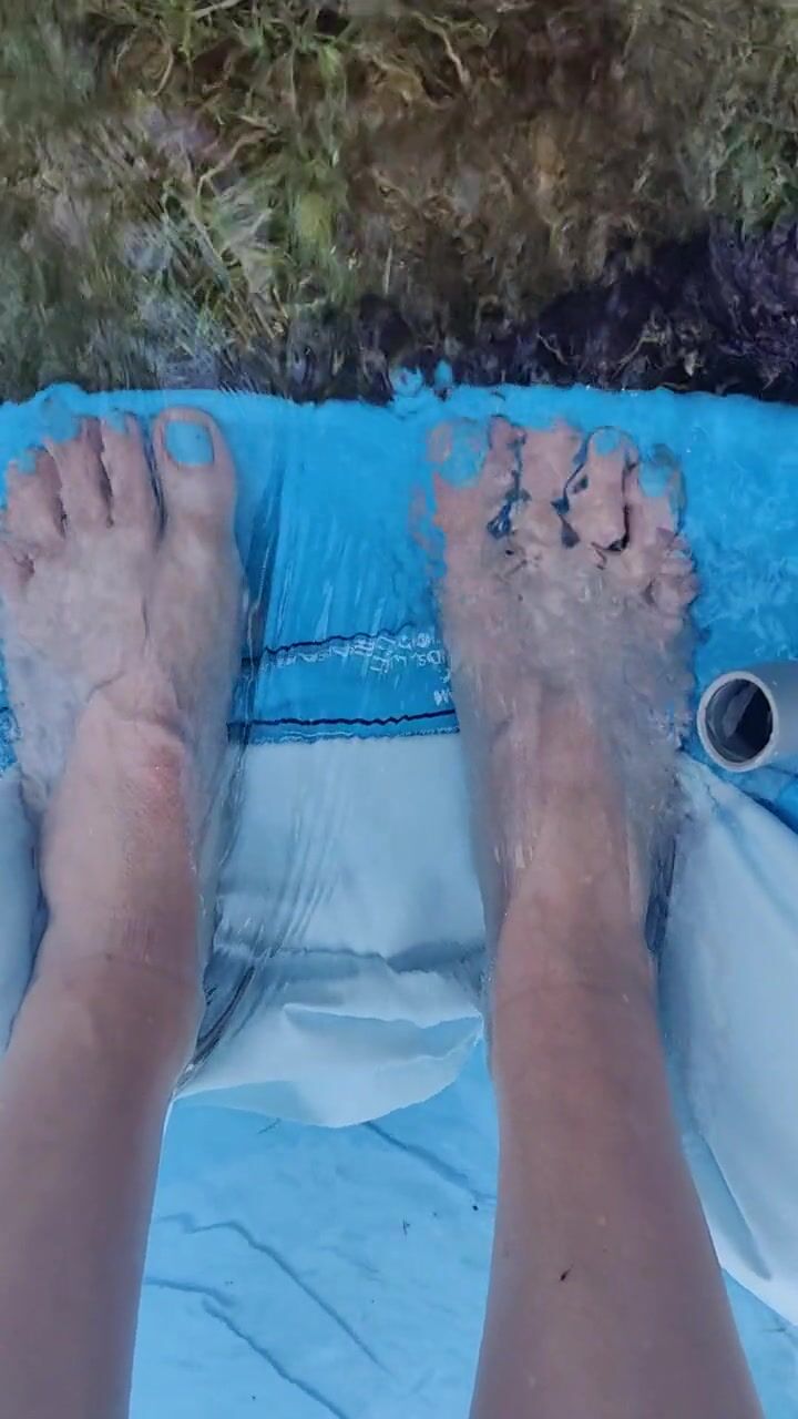 Letting fast water run across the top of my feet as I drain a pool